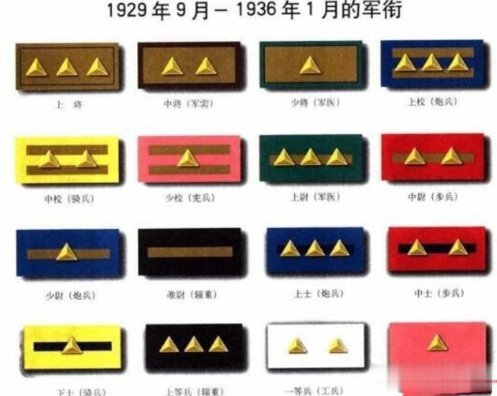 1929-1936年1月的国军军衔领章,和1936年的还是不一样