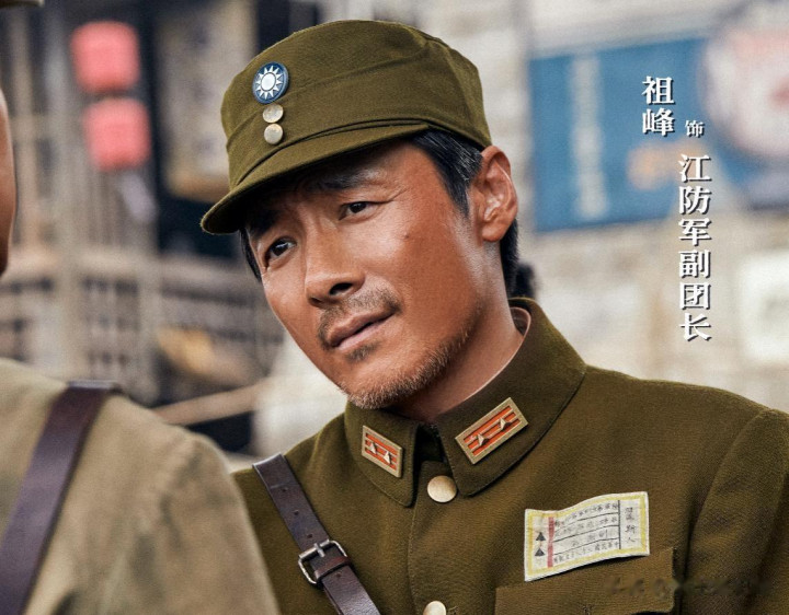 电影里面出场主要分为两部分,一个是祖峰饰演的国军中级军官,他在电影中扮演的是某江防团副团长。